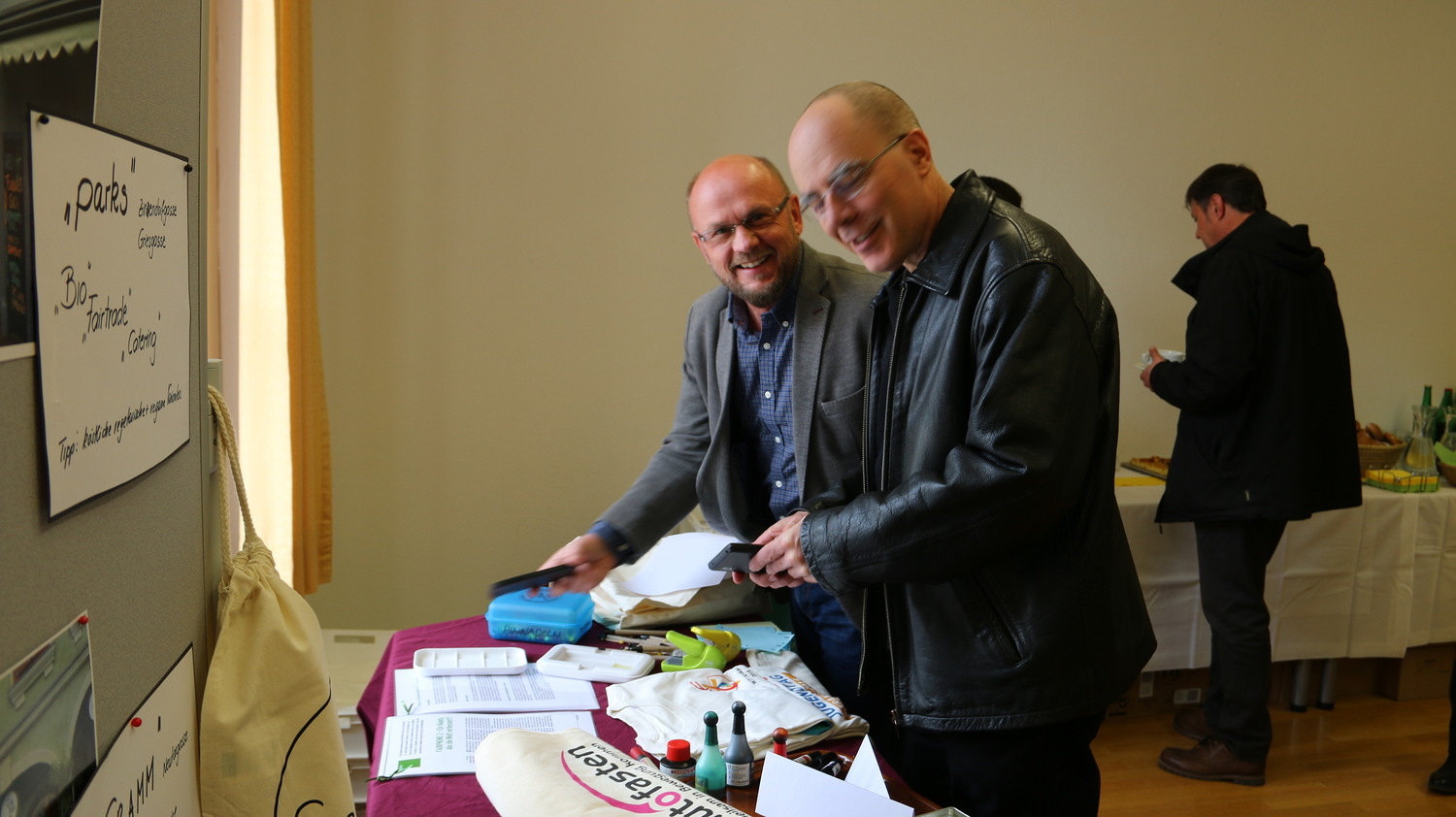 Einige Kolleginnen stellten persönlich nachhaltige und bewährte Produkte vor: nachfüllbare Textmarker (seit 15 Jahren im KBW im Verwendung!), den Locher ohne Metallklammern, das Fairphone (reparierfähiges Handy) und, last but not least, viele Tipps für eine gesunde und ökologische Sitzungsverpflegung (Liste im Anhang).