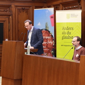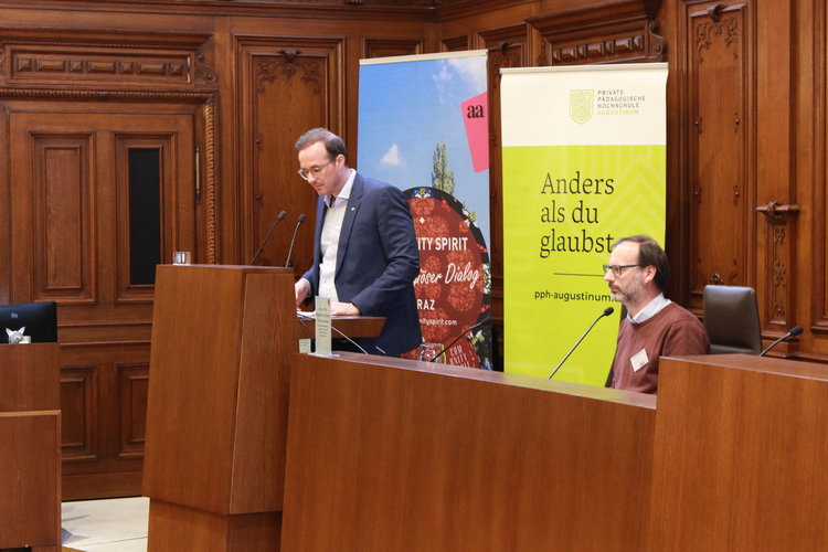 „Selbstverständlich braucht Demokratie auch Religionen, denn ohne Halt kann man nicht leben, gerade in Zeiten, in denen Unsicherheit verbreitet ist“, betonte die Grazer Bürgermeisterin Elke Kahr in ihrem Eröffnungsstatement. Der Leiter des Kultusamtes Florian Welzig erläuterte das österreichische System der Kooperation zwischen Staat und Religionsgemeinschaften und begründete detailliert, warum er darin einen guten Träger für die Zukunft sieht. Ein besonders sensibler und zentraler Gradmesser für den Stand von Gesellschaften sei die Religionsfreiheit, deren Wesen darin bestehe, Religion nicht nur privat zu praktizieren, sondern öffentlich auszuüben. Aus seiner Perspektive sei die Gesellschaft auf vielen Säulen aufgebaut, Religion sei eine wesentliche davon.