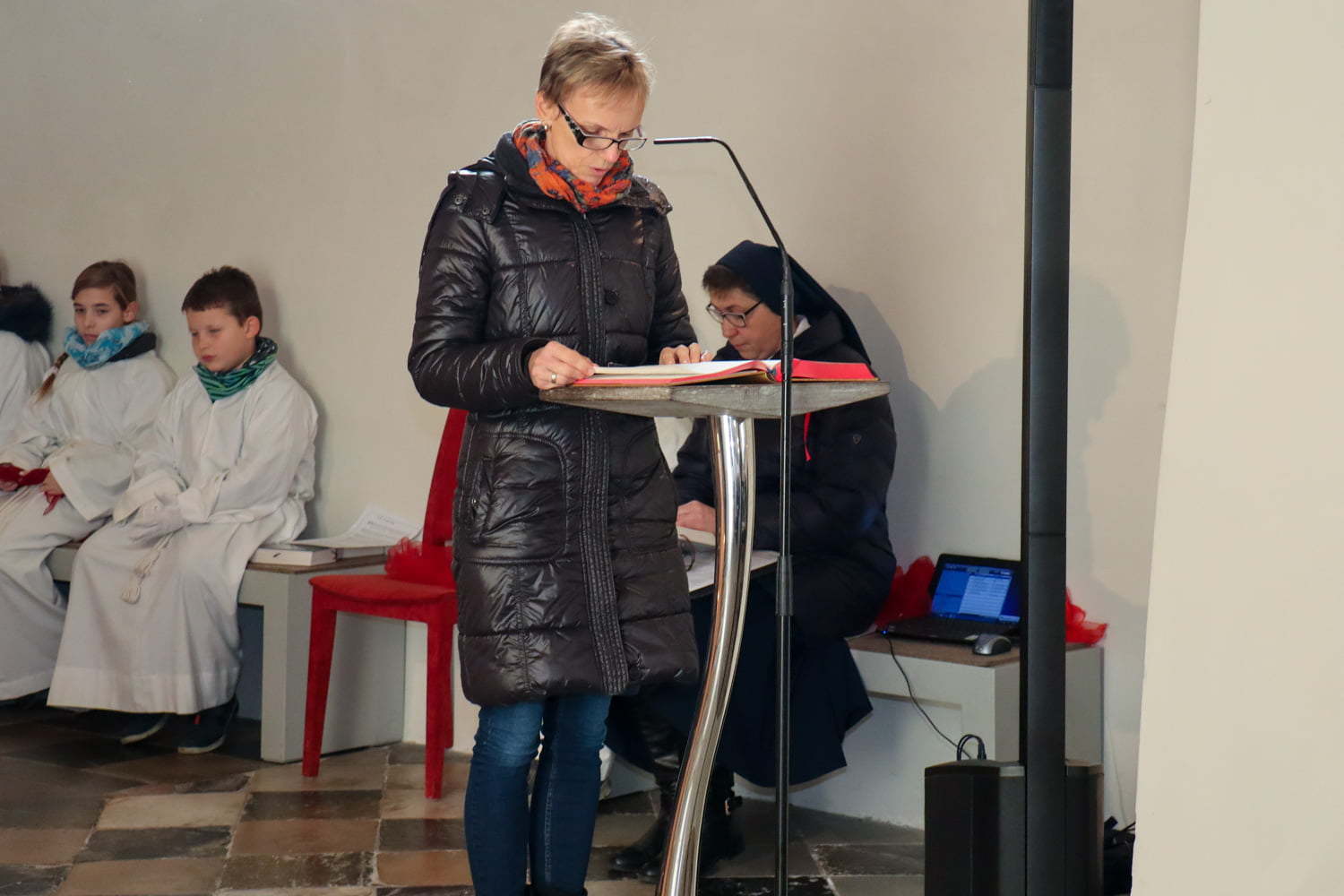 In der Wortgottesfeier ist mehr Raum für neue Elemente. So tanzte Barbara Koren mit einigen Frauen und Kindern den Tanz „Samen der Liebe“. Gebet ist nicht nur reden, singen, still sein … sondern auch mit Leib und Seele, mit dem ganzen Körper meinen Glauben zum Ausdruck zu bringen. Vor dem Segen zeigten die Kinder mit einer symbolischen Handlung – das Aufblühen „einer Blüte“ mit Seidentüchern – was es bedeutet, füreinander zum Segen zu werden.