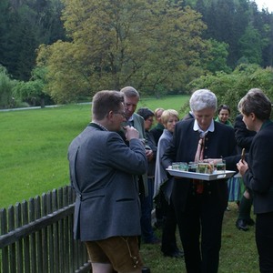 An der idyllisch gelegenen Nepomuk-Kapelle feierte eine zahlreich erschienene Gottesdienstgemeinde mit Pfr. Ruthofer die Vorabendmesse. Musikalisch umrahmte die Sängerrunde Laufnitzdorf die Feier. Nach dem Segen läutete unser Pfarrer die Glocke und leitete zur Agape über. Alle blieben und genossen die Getränke, stärkten sich mit gutem Bauernbrot und hatten einander vieles mitzuteilen.