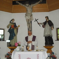 Dieses Zeichen des Glaubens steht am rechten Ufer des Tyrnauer Baches – kurz vor der Ortschaft Schrems – auf einer Wiese, die früher auch „Kreuzacker“ genannt wurde. Es beherbergt hinter einem kleinen, verglasten Gitter ein schönes Marienbild und Statuen von verschiedenen Heiligen.
