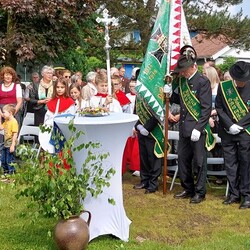 Gemeinsam mit der Pfarre Tobelbad feierten wir das Fronleichnamsfest beim Dorfkreuz in Lieboch. Der auferstandene Herr Jesus, der in der Gestalt des Brotes gegenwärtig ist, steht im Mittelpunkt.