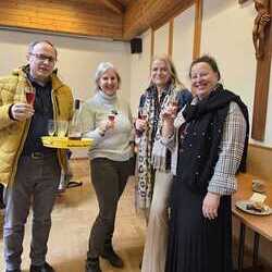 Nach dem musikalisch wunderbar umrahmten Gottesdienst begrüßten die KirchenchorsängerInnen  die BesucherInnen "mit an schean G'sang" und luden zu einem gemütlichen Beisammensein im Pfarrsaal ein.